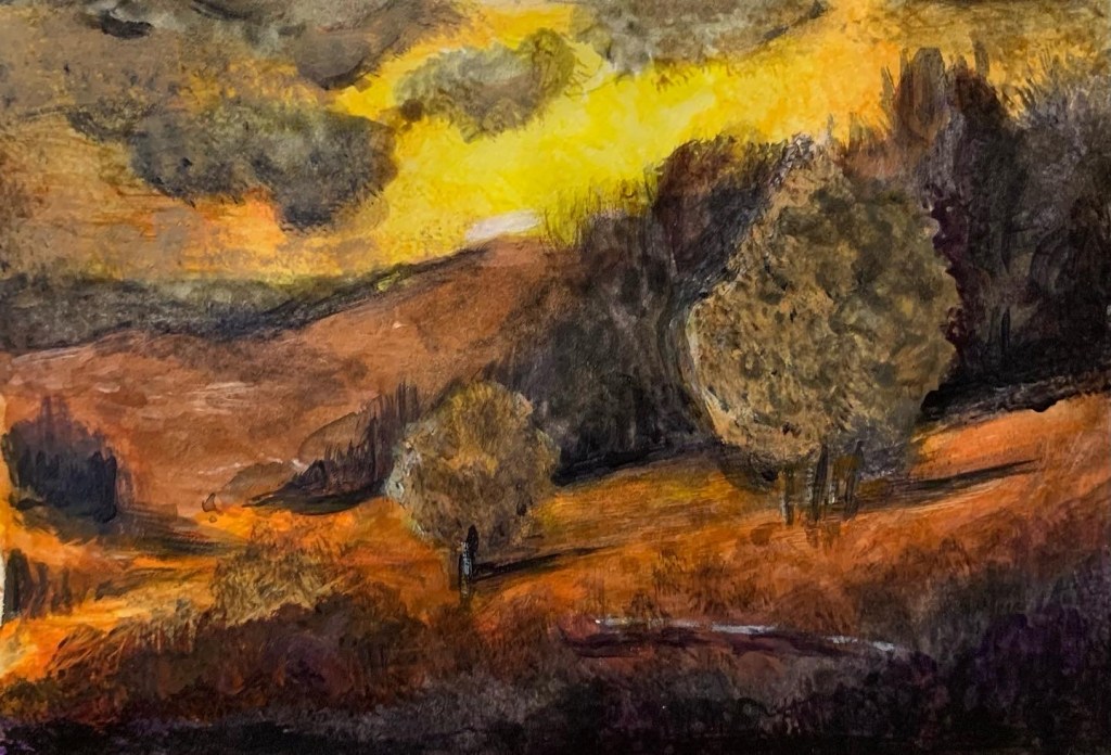 My only New Year’s Resolution for 2023 was to get back into painting and being more creative outside of my day job. It’s tough for me to get artistically motivated after a day’s work of being creative professionally so what better way to get back into it than recreate some of my favorite George Inness paintings! These are all 4.5″x3″ish, acrylics on paper.